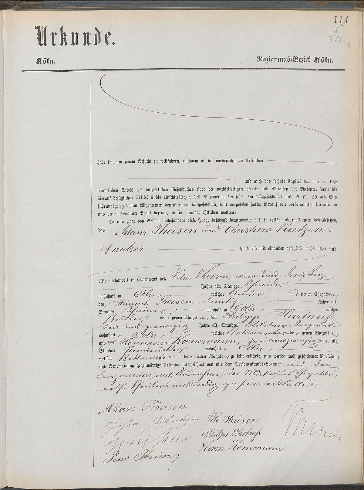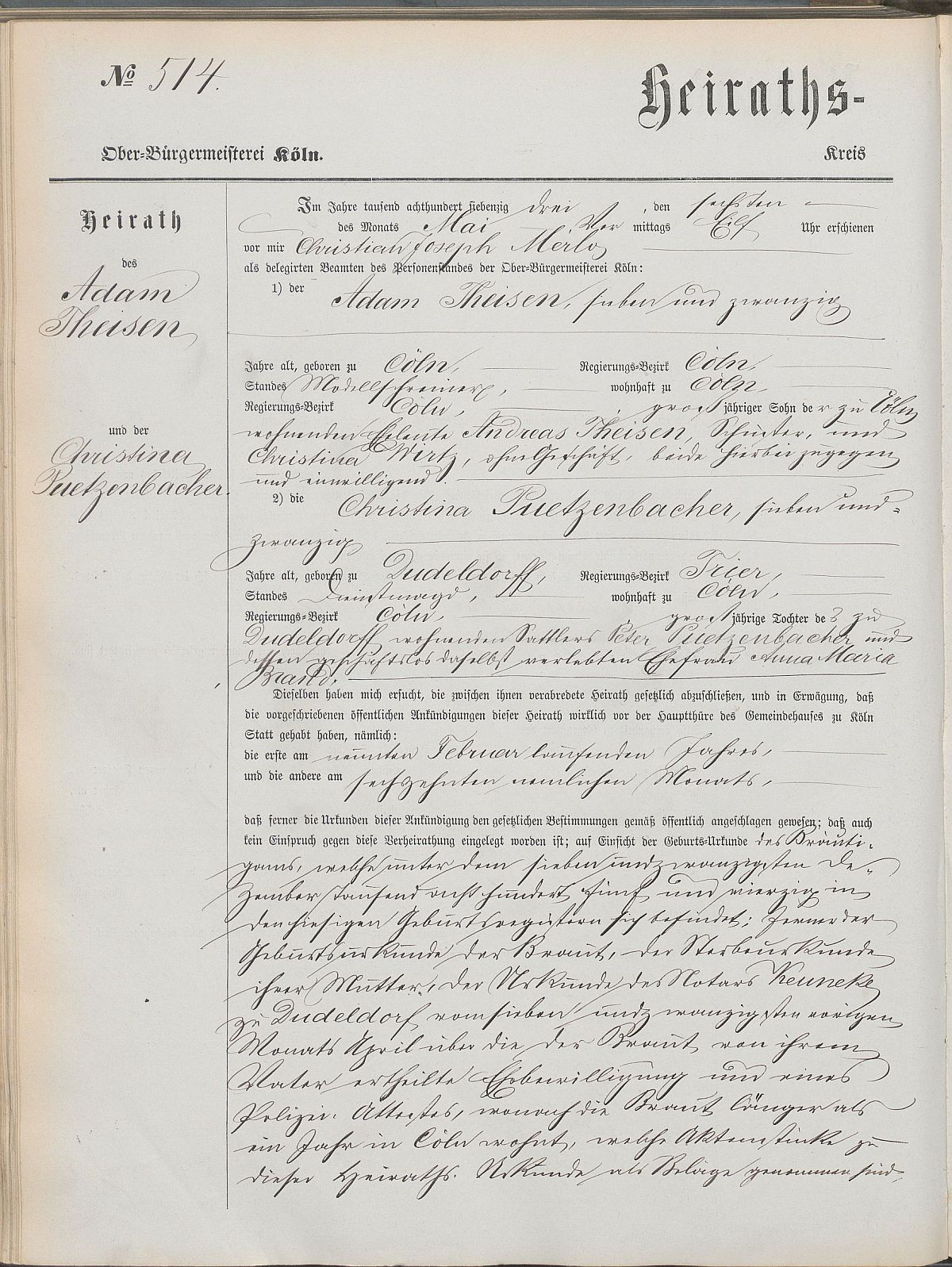 Hochzeitsregister Nr. 514/1873 Zivilstandsregister Köln