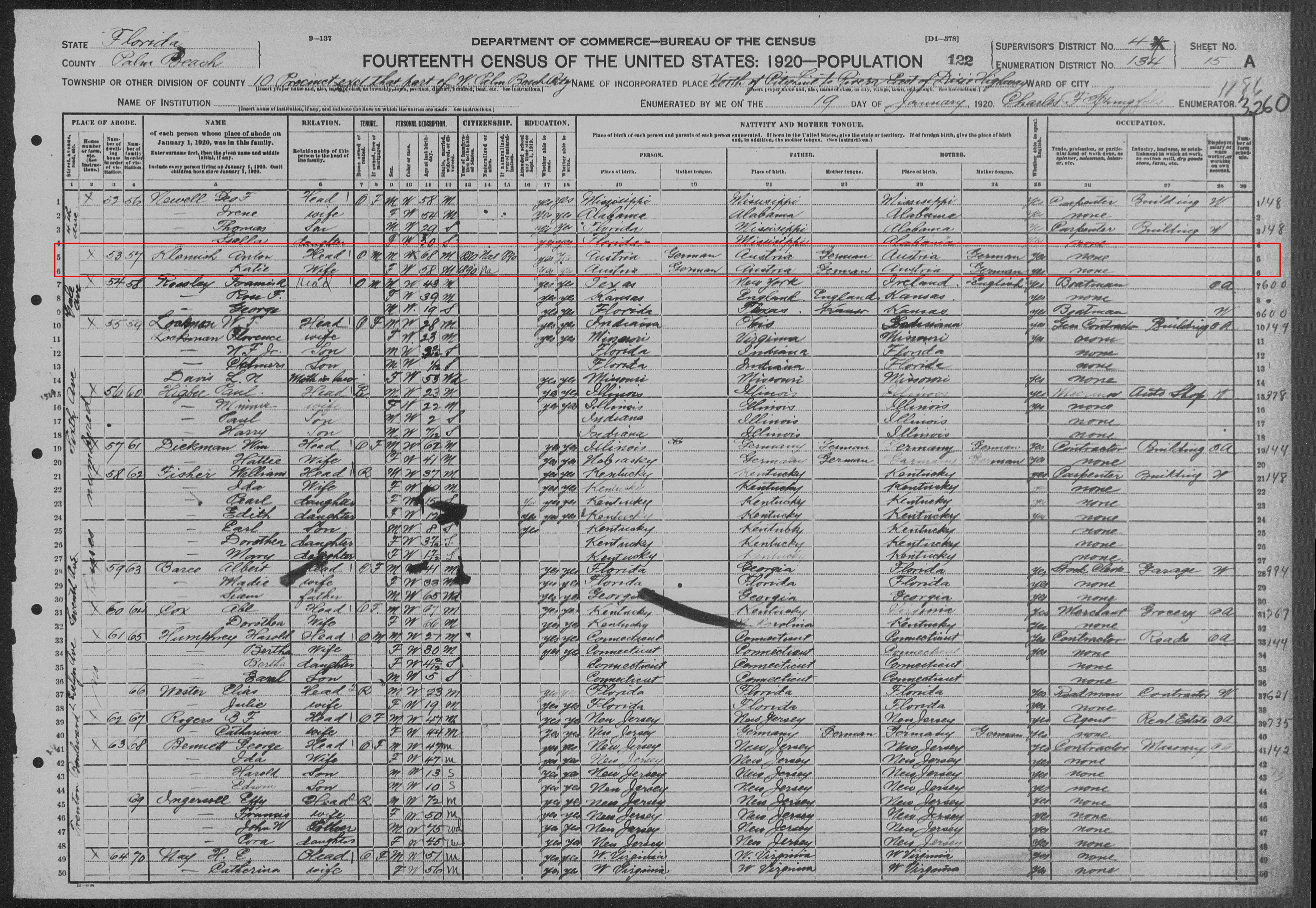 Beerdigung von Anton Klimesch: Die Trauerfeier für Anton Klimesch, der am 2. Januar in West Palm Beach verstarb, findet am Freitag um 14.00 Uhr in der Barta-Kapelle statt. Der Pfarrer F. D. Chada wird die Zeremonie durchführen und die Beisetzung findet auf dem Friedhof von Oak Hill statt. Freunde können am Donnerstagabend in der Kapelle vorbeischauen.