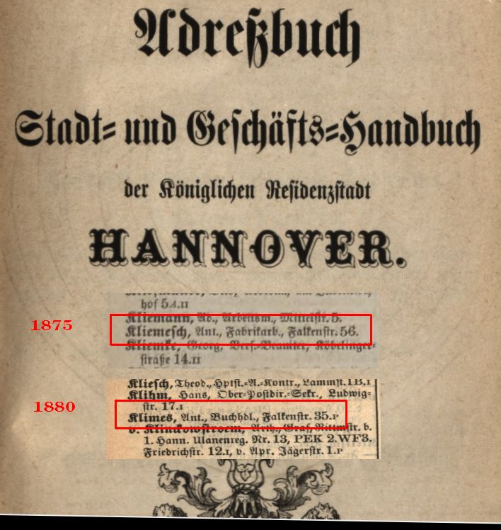 Laut Heiratsurkunde 1873 wurde der Beruf als Hobler angegeben, laut Adressbuch Hannover 1875 war er Fabrikarbeiter, laut Adressbuch 1880 war er Buchhändler (letztmalig in 1882 im Adressbuch Hannover aufgeführt, danach nur noch seine Ehefrau). In den USA bzw. Kanada war er dann Gastwirt/Hotelbesitzer und vermutlich auch Pelzhändler.