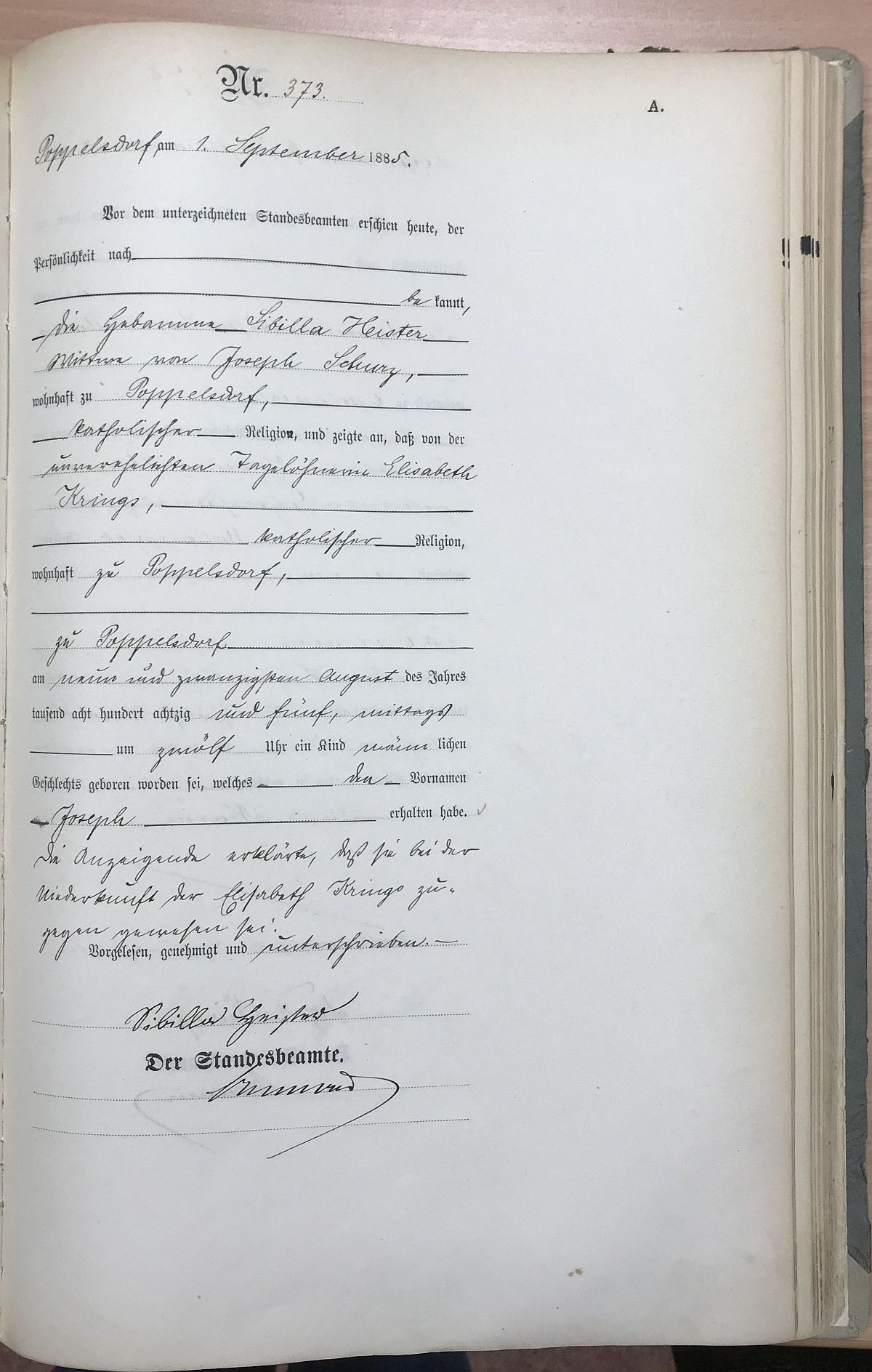 Quelle: Geburtsurkunde Standesamt Poppelsdorf Nr. 373/1885