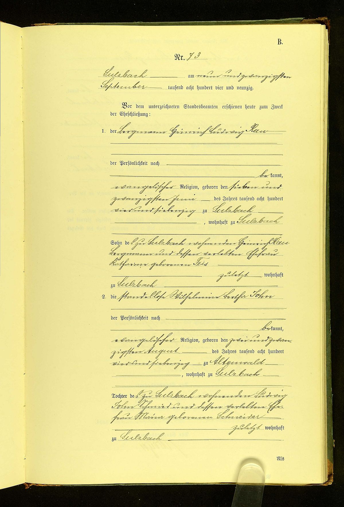 Heiratsregister Nr. 73/1894 Standesamt Sulzbach