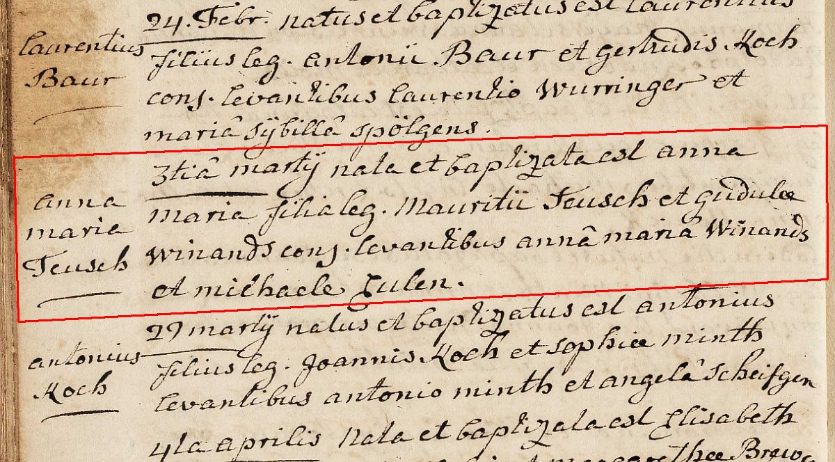Vater: Moritz Deutsch Mutter: Gudula Deutsch geb. Winand Geschwister: Peter Deutsch Anna Catharina Deutsch Michael Deutsch Johann Deutsch Kinder: Gudula Leinekugel Jacob Leinekugel