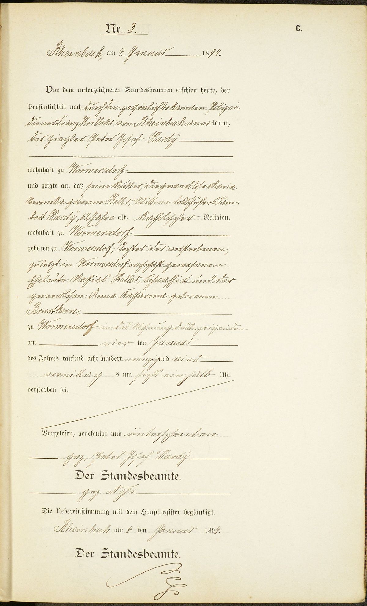 Quelle: Sterbeurkunde Nr. 3/1894 Standesamt Rheinbach-Land