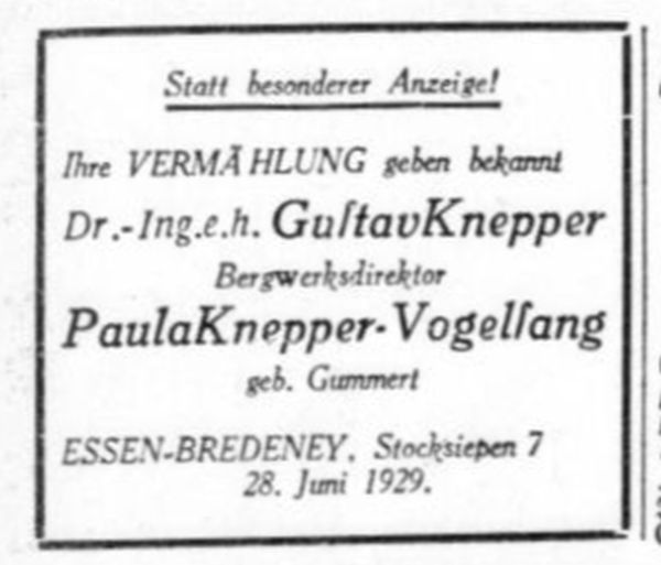 oo 28.06.1929 Essen-Bredeney Dr. Ing. e. h. Heinrich Gustav Knepper