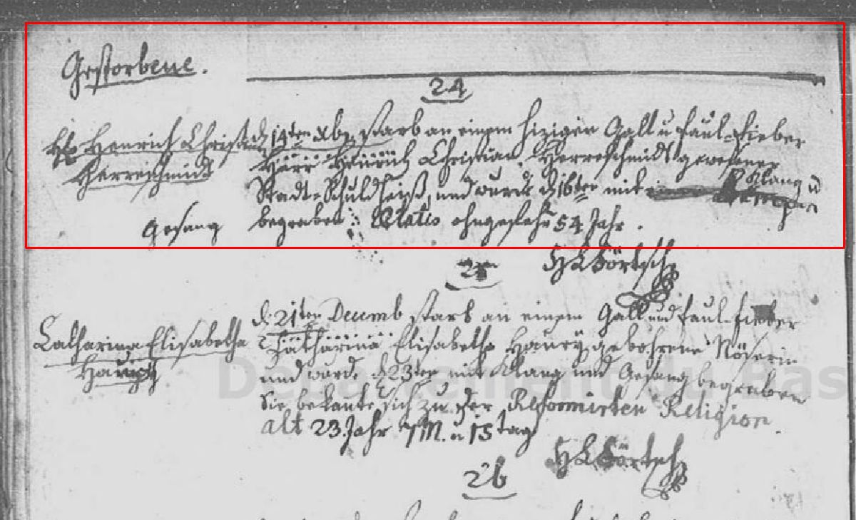 Quelle: Sterbeeintrag Nr. 24/1791 der evangelischen Kirche zu Harskirchen