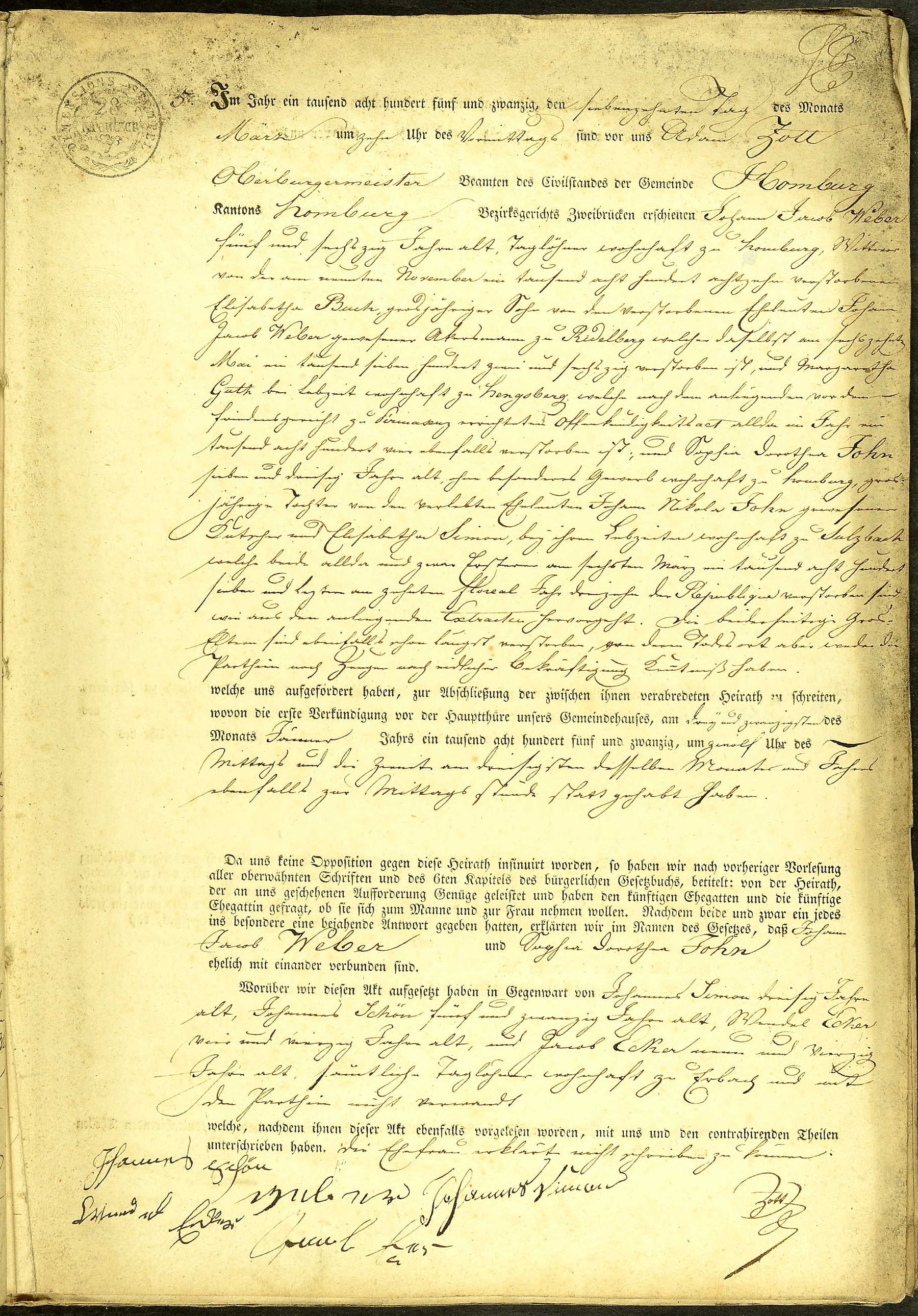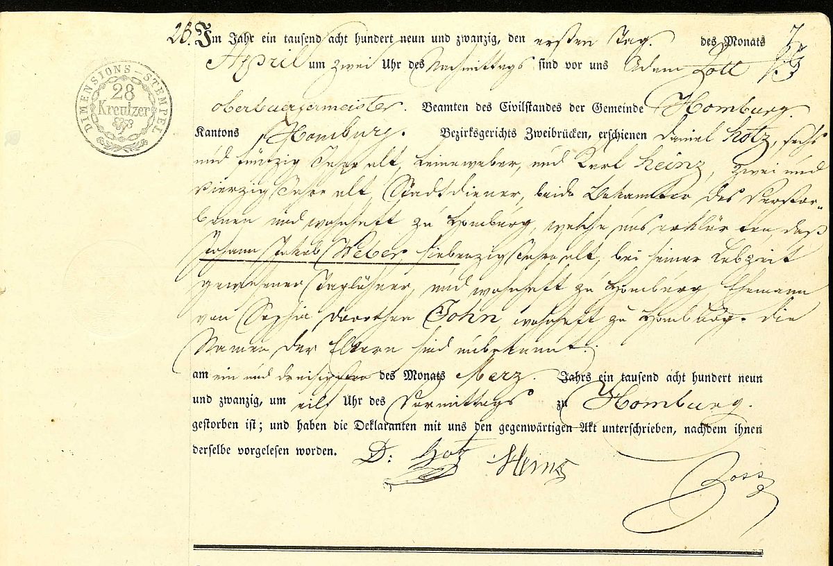 Quelle: Heiratsregister Nr. 5/1825 Zivilregister Homburg