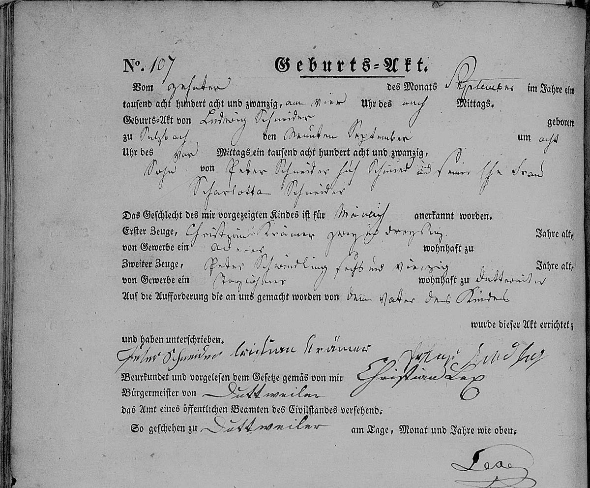 Quelle: Geburtsregister Nr. 107/1828 Zivilstandsregister Dudweiler
