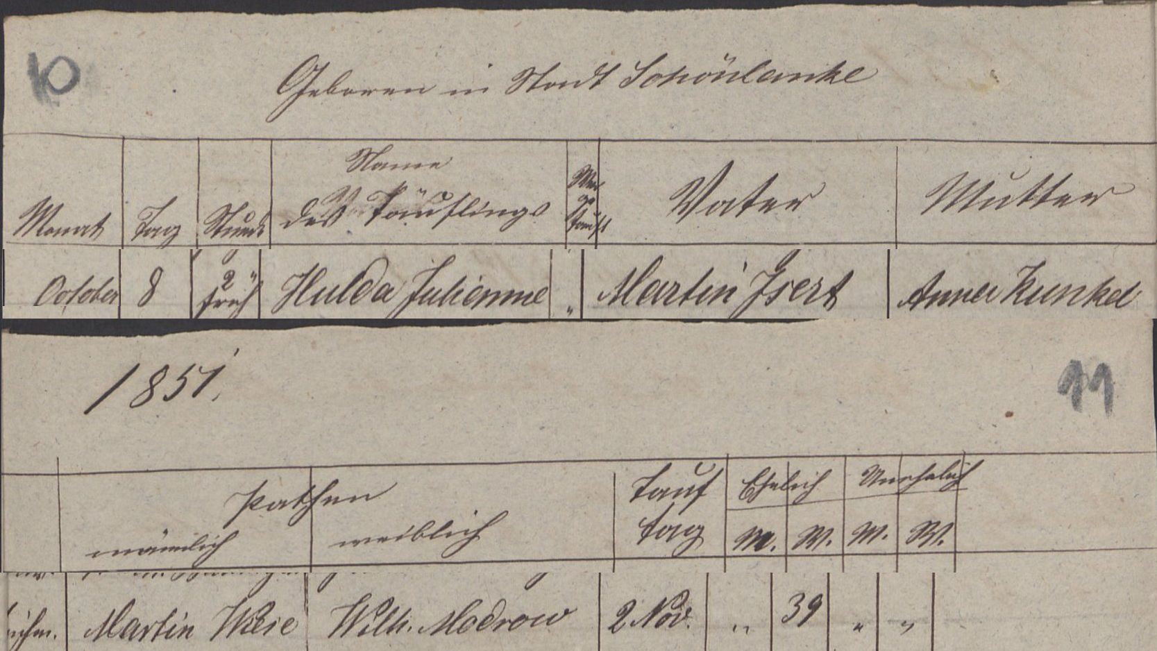 Quelle: Taufeintrag 1851 der evangelischen Kirchengemeinde Stadt Schönlanke