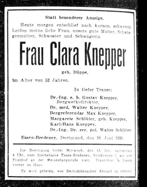Traueranzeige: Essener Allgemeine Zeitung vom 11.06.1928