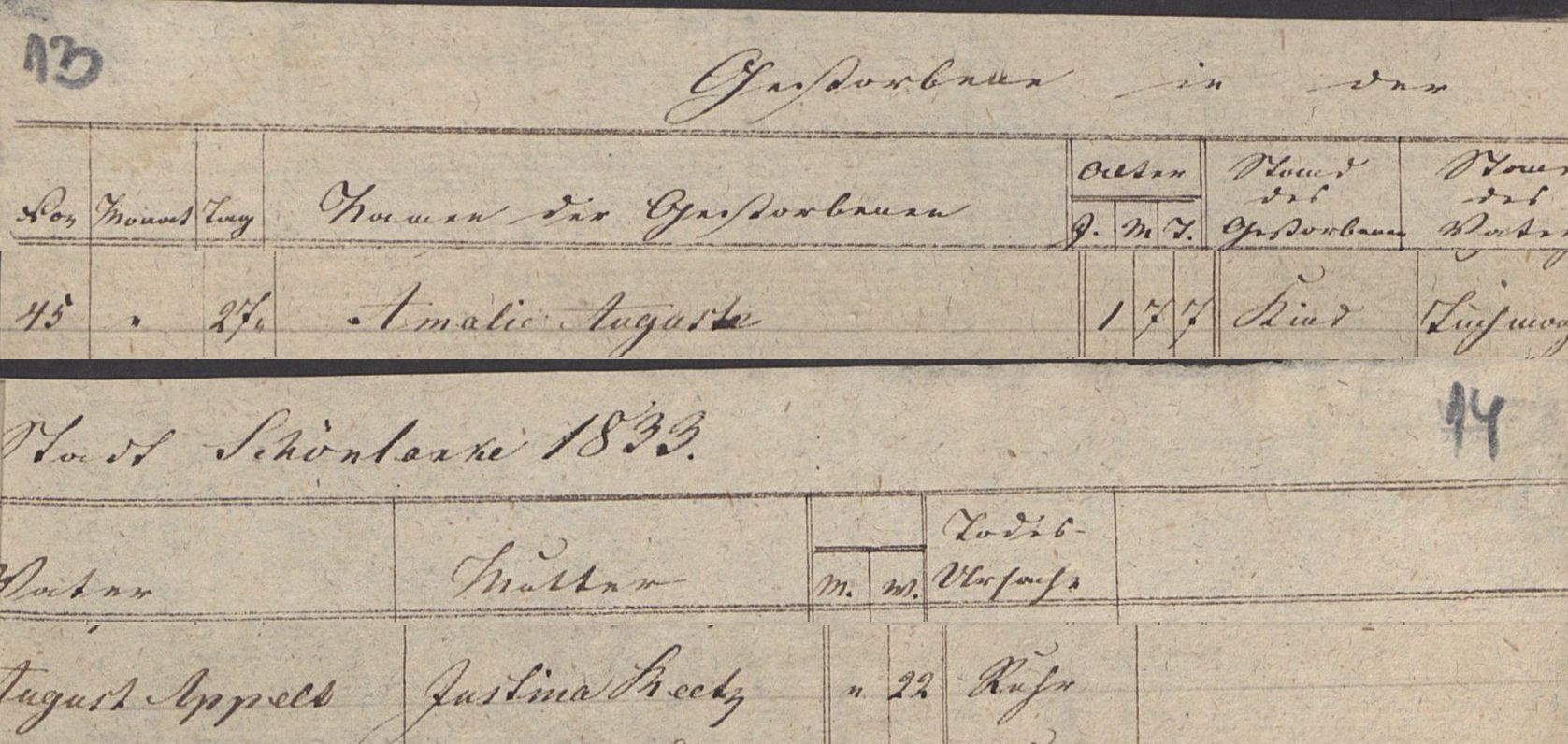 Sterbeeintrag 1833 der evangelischen Kirchengemeinde Stadt Schönlanke