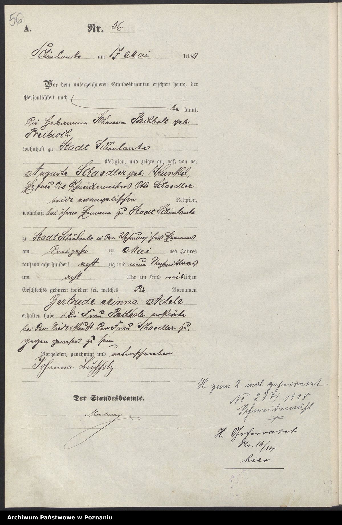 Quelle: Geburtsregister Nr. 56/1889 Standesamt Stadt Schönlanke