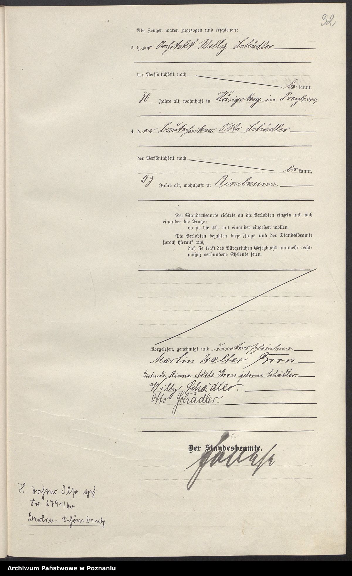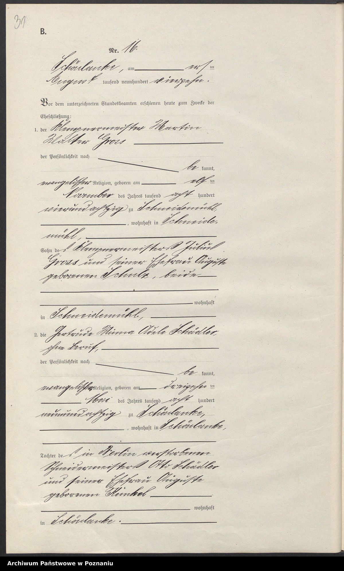 Heiratsurkunde Nr. 16/1914 Standesamt Stadt Schönlanke