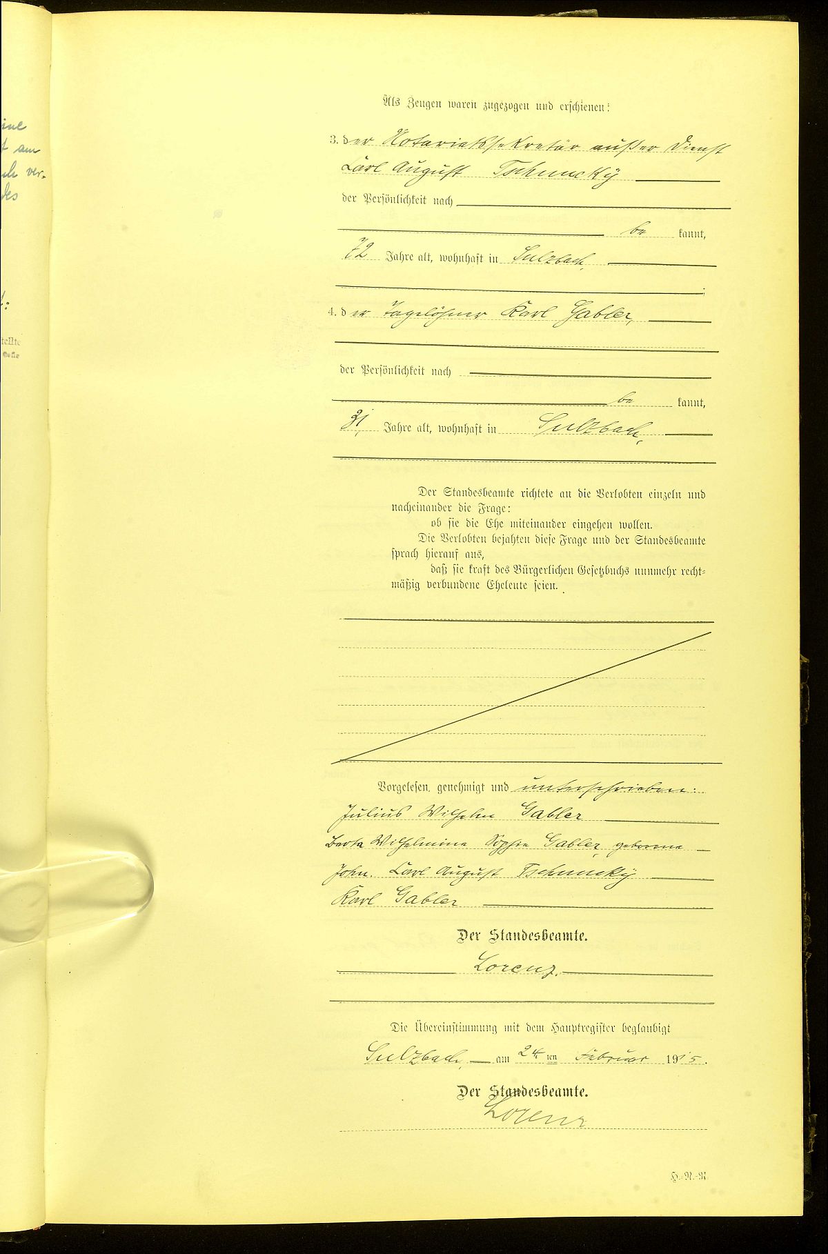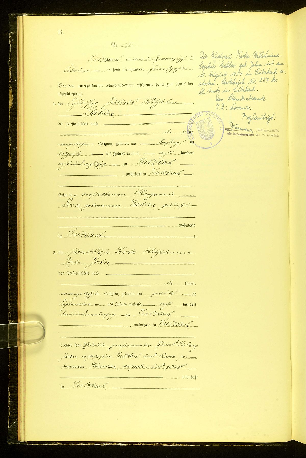 Heiratsregister Nr. 19/1915 Standesamt Sulzbach