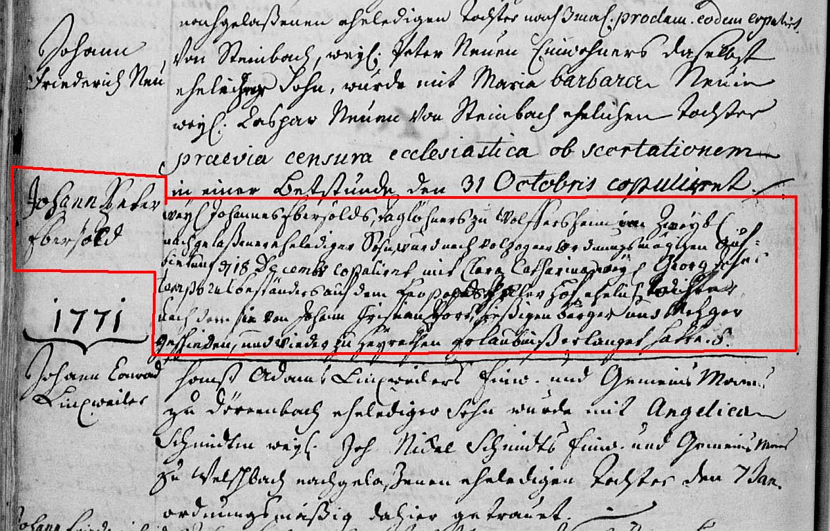 Quelle: Hochzeitseintrag 1770 der Ev. Kirchengemeinde Ottweiler