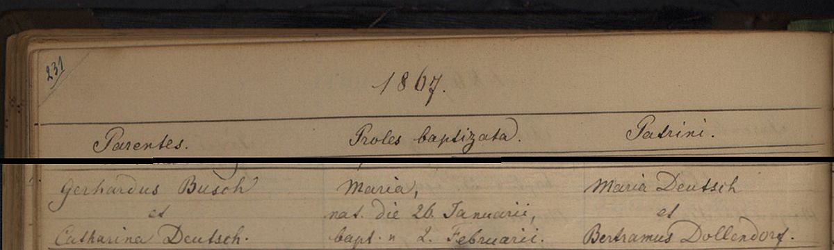 Taufeintrag Kirchenbuch St. Martin aus 1867