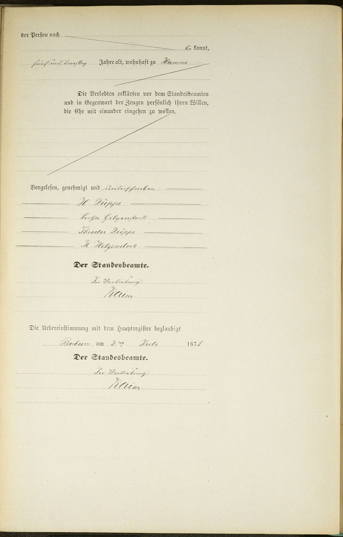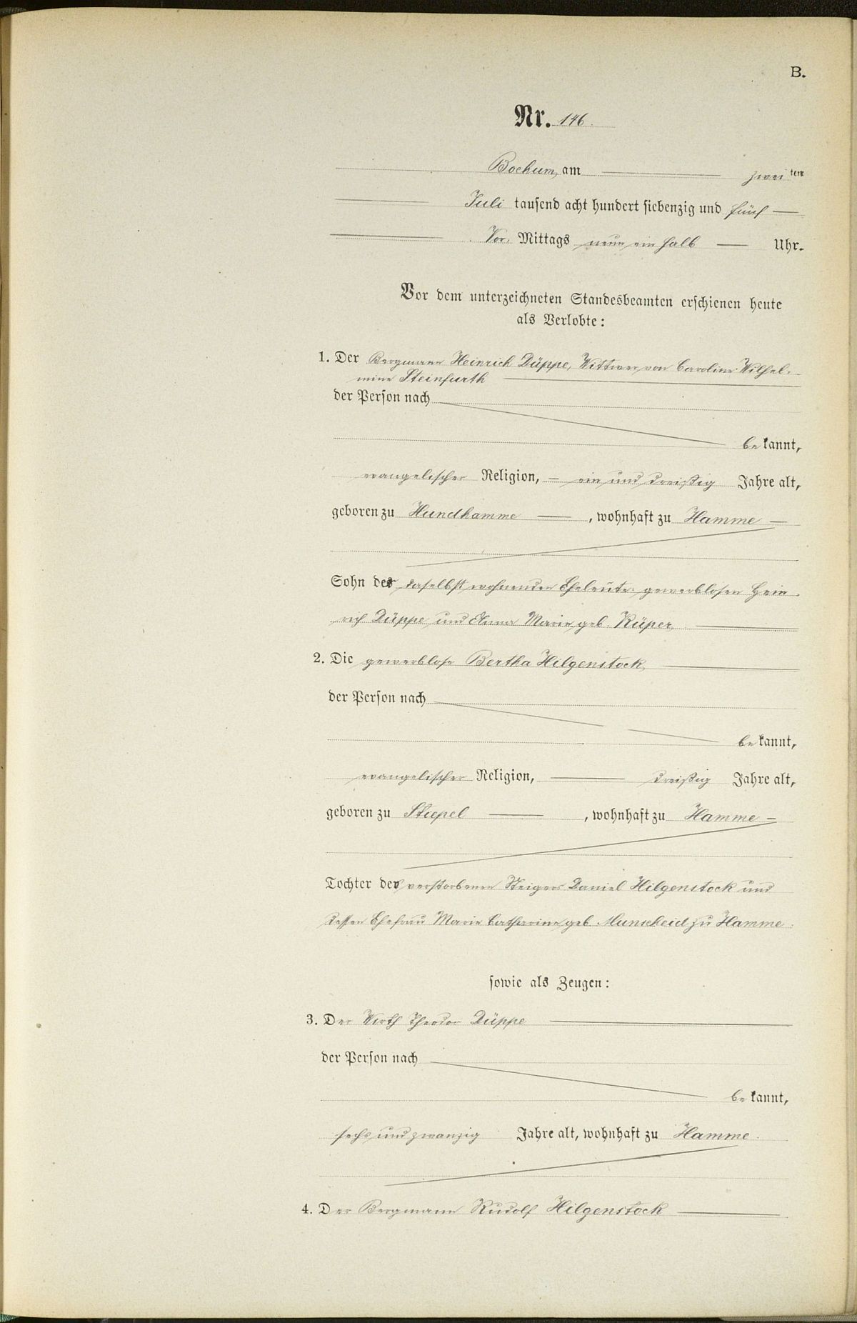 Heiratsregister Nr. 146/1875 Bochum II Süd (2. Ehe)