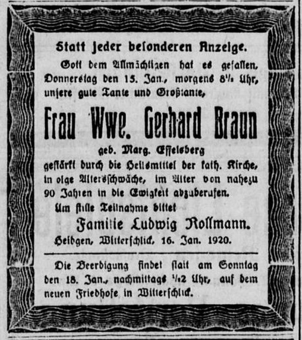 Quelle: Sterberegister Nr. 5/1920 Standesamt Oedekoven