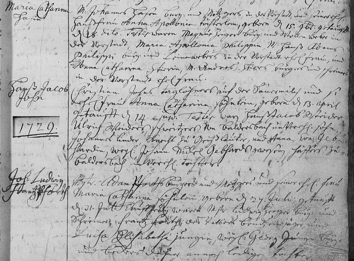 Quelle: Taufeintrag 1729 der Ev. Kirchengemeinde Ottweiler