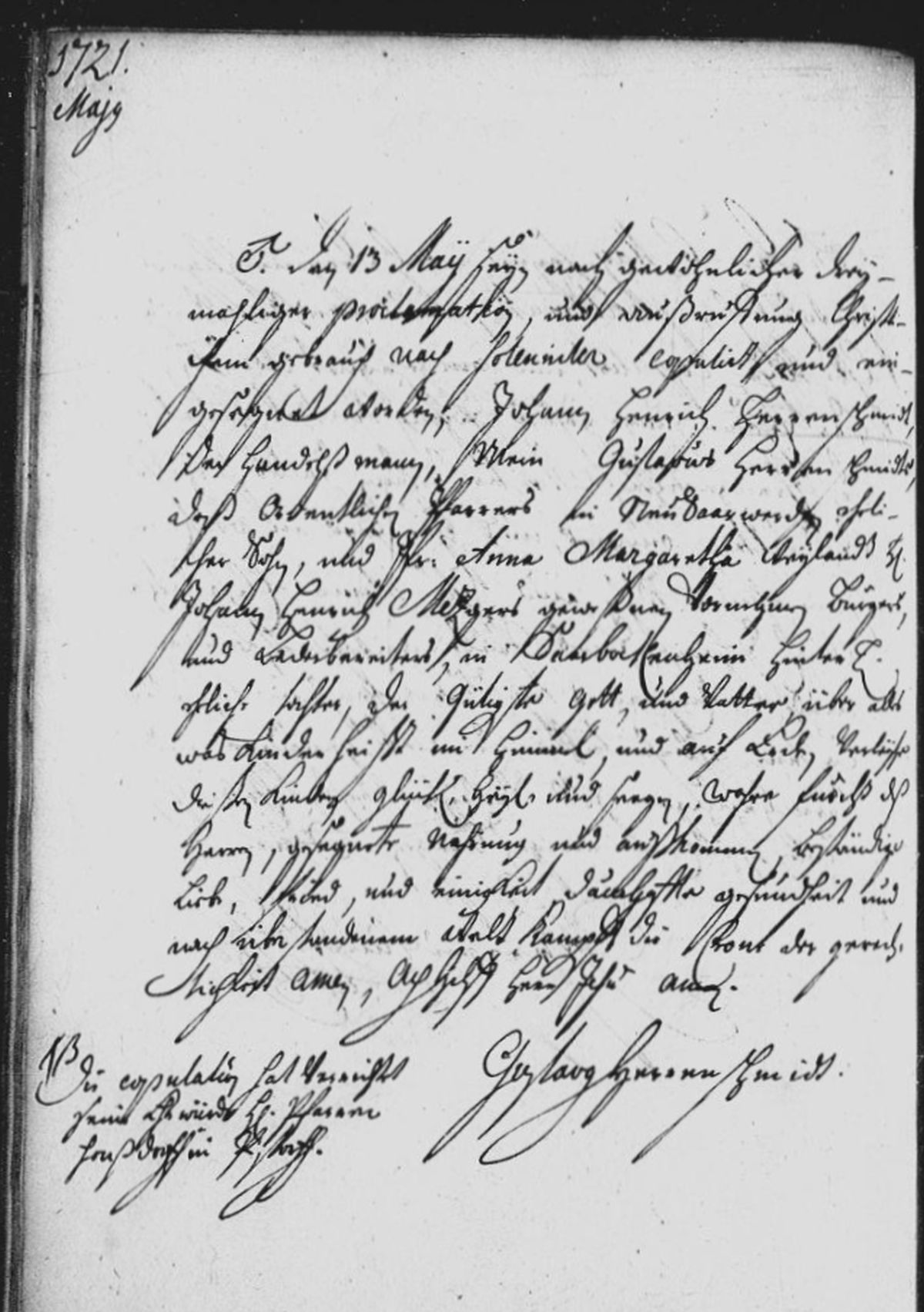 oo 13.05.1721 Neu-Saarwerden, Fürstentum Nassau-Saarbrücken (heute Ville Neuve de Sarrewerden, Stadtteil von Sarre-Union, Département du Bas-Rhin, Frankreich) Anna Margaretha Herrenschmidt geb. Metzger
