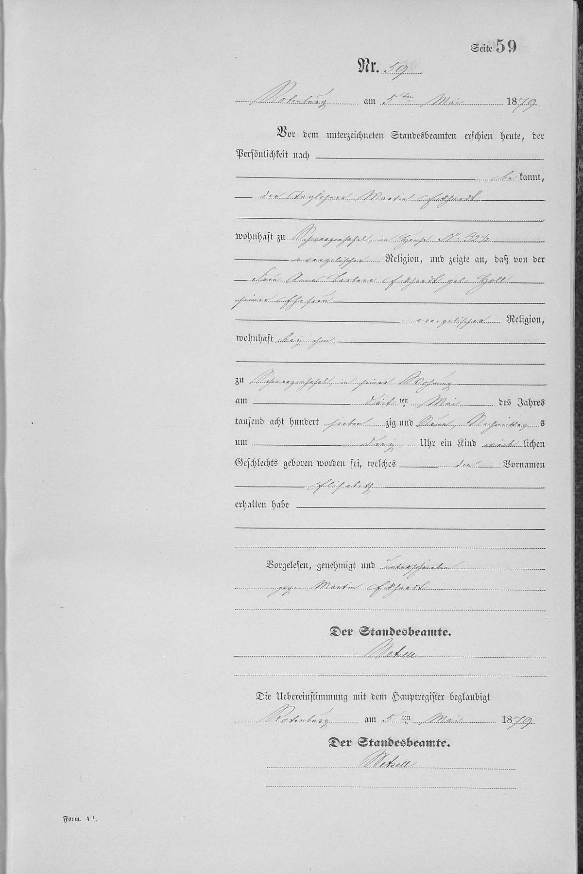 Quelle: Geburtsregister Nr. 59/1879 Standesamt Rotenburg a.d. Fulda