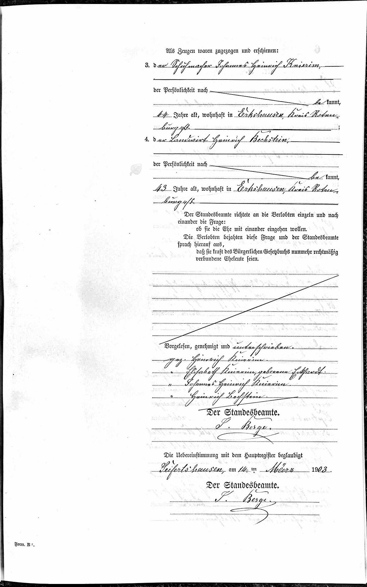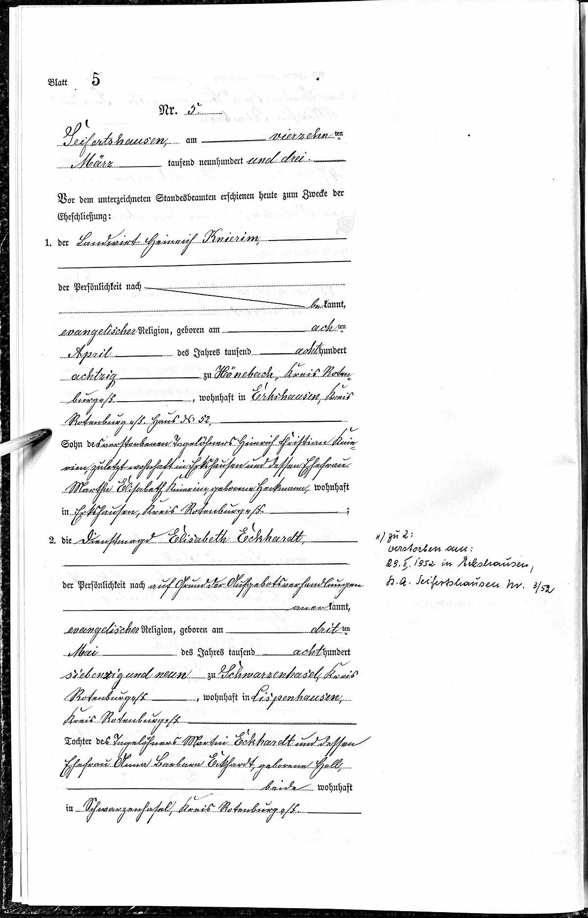 Heiratsregister Nr. 5/1903 Standesamt Seifertshausen