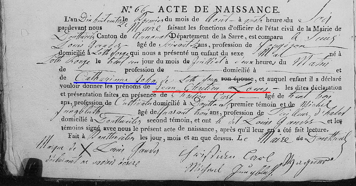 Quelle: Geburtsregister Nr. 66/1811 Zivilstandsregister Dudweiler