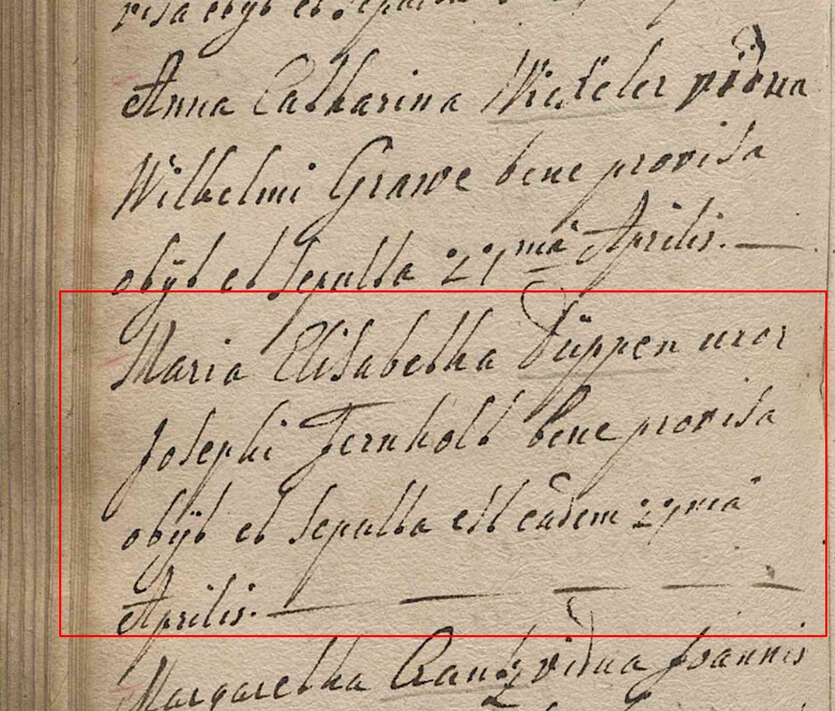 Quelle: Sterbeeintrag 1777 der kath. Kirchengemeinde St. Johannes Bapt. zu Attendorn Seite 246