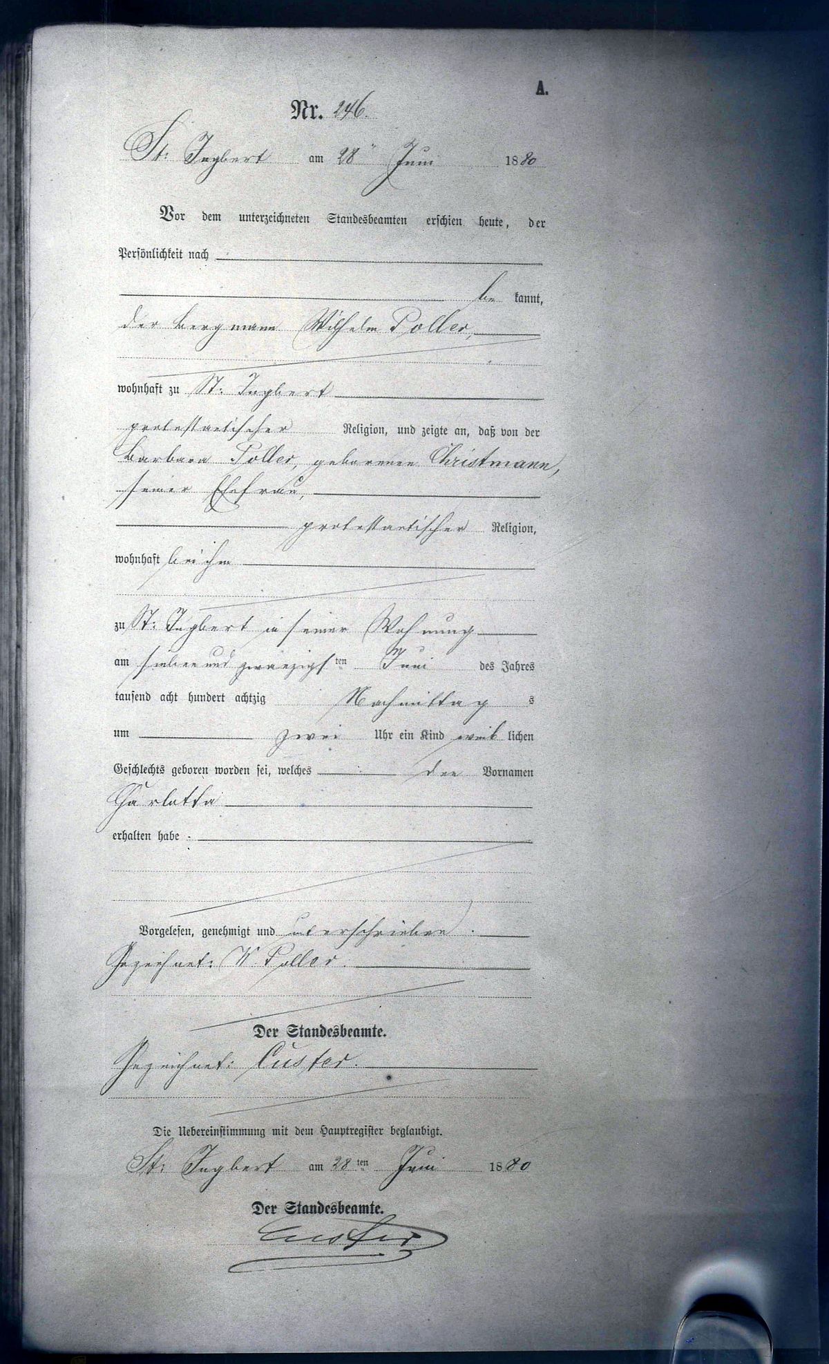 Quelle: Geburtsurkunde Nr. 246/1880 Standesamt St. Ingbert
