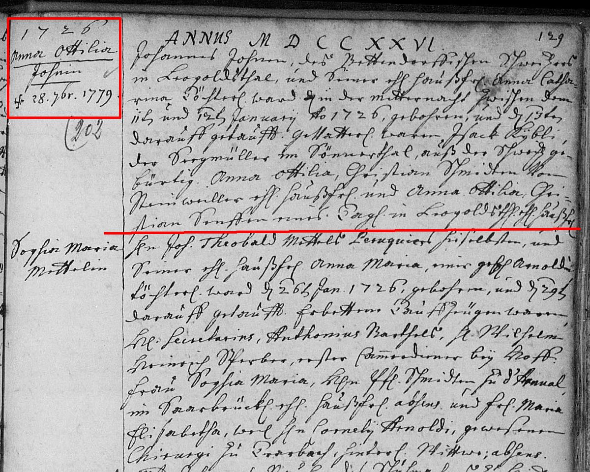 Quelle: Taufeintrag 1726 der Ev. Kirchengemeinde Ottweiler
