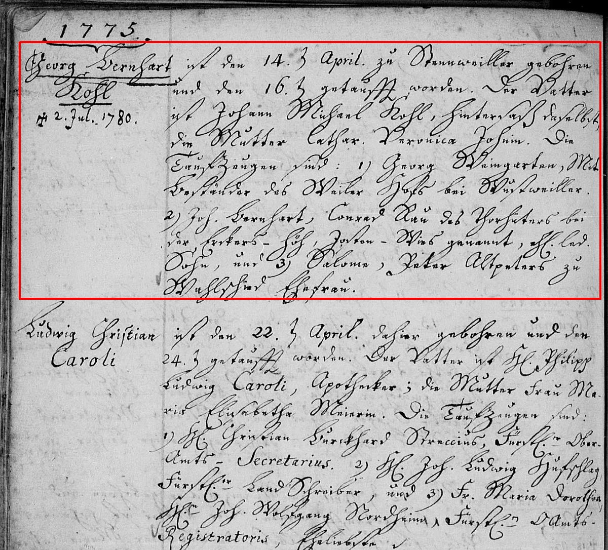 Quelle: Taufeintrag 1775 der ev. Kichengemeinde Ottweiler
