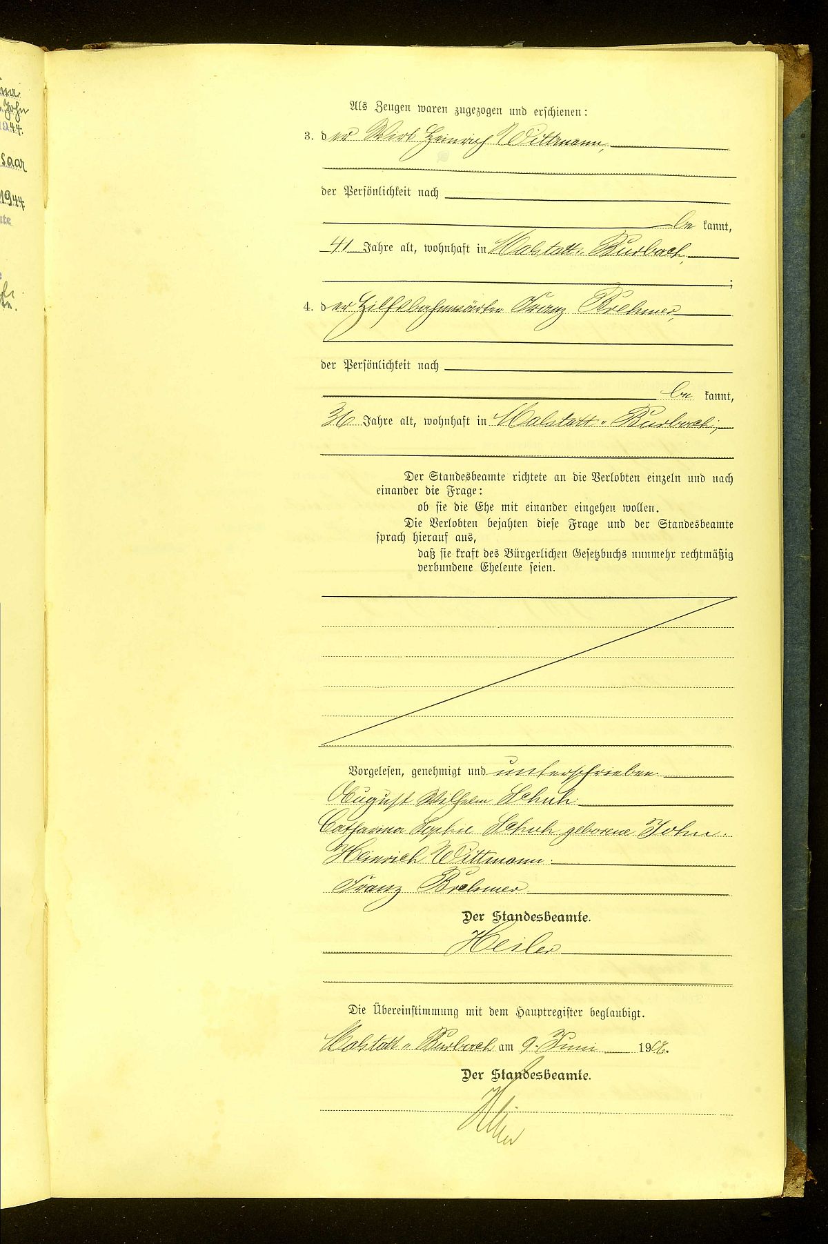 Quelle: Heiratsurkunde Nr. 150/1906 Standesamt Malstatt-Burbach