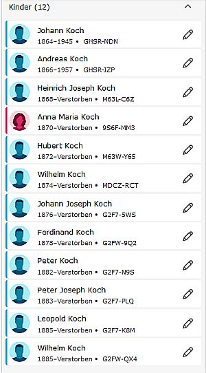 Insgesamt 12 Kinder nachgewiesen 1864-1885