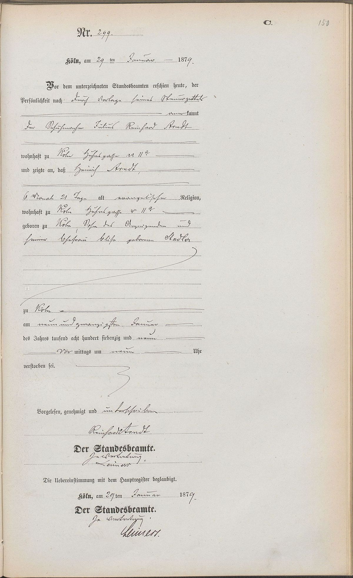 Arndt, HeinrichEvangelisch* 08.07.1878 Köln+ 29.01.1879 KölnQuelle: Sterberegister Nr. 299/1879 Standesamt Köln Vater:Julius Reinhard Arndt Mutter:Elisabeth Arndt geb. Stadler Geschwister:Wilhelm Heinrich Reinhard Arndt Friedrich Andreas Heinrich Arndt Wilhelm Heinrich Albert Arndt Philipp Arndt Catharina Amalia Bertha Arndt Anna Elisabeth Arndt Erstellt mit dem Programm AHNENBLATT (www.ahnenblatt.de).