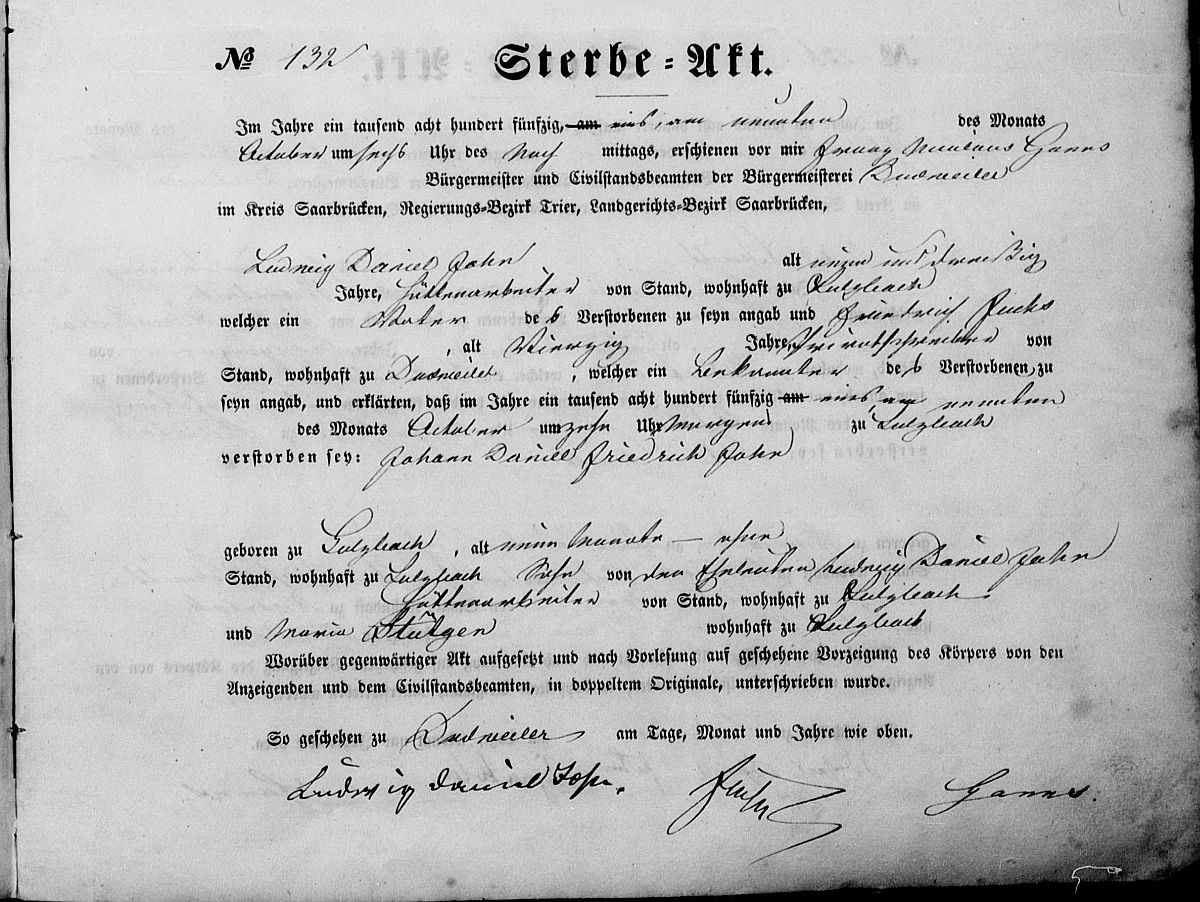 Sterberegister Nr. 132/1851 Zivilstandsregister Dudweiler