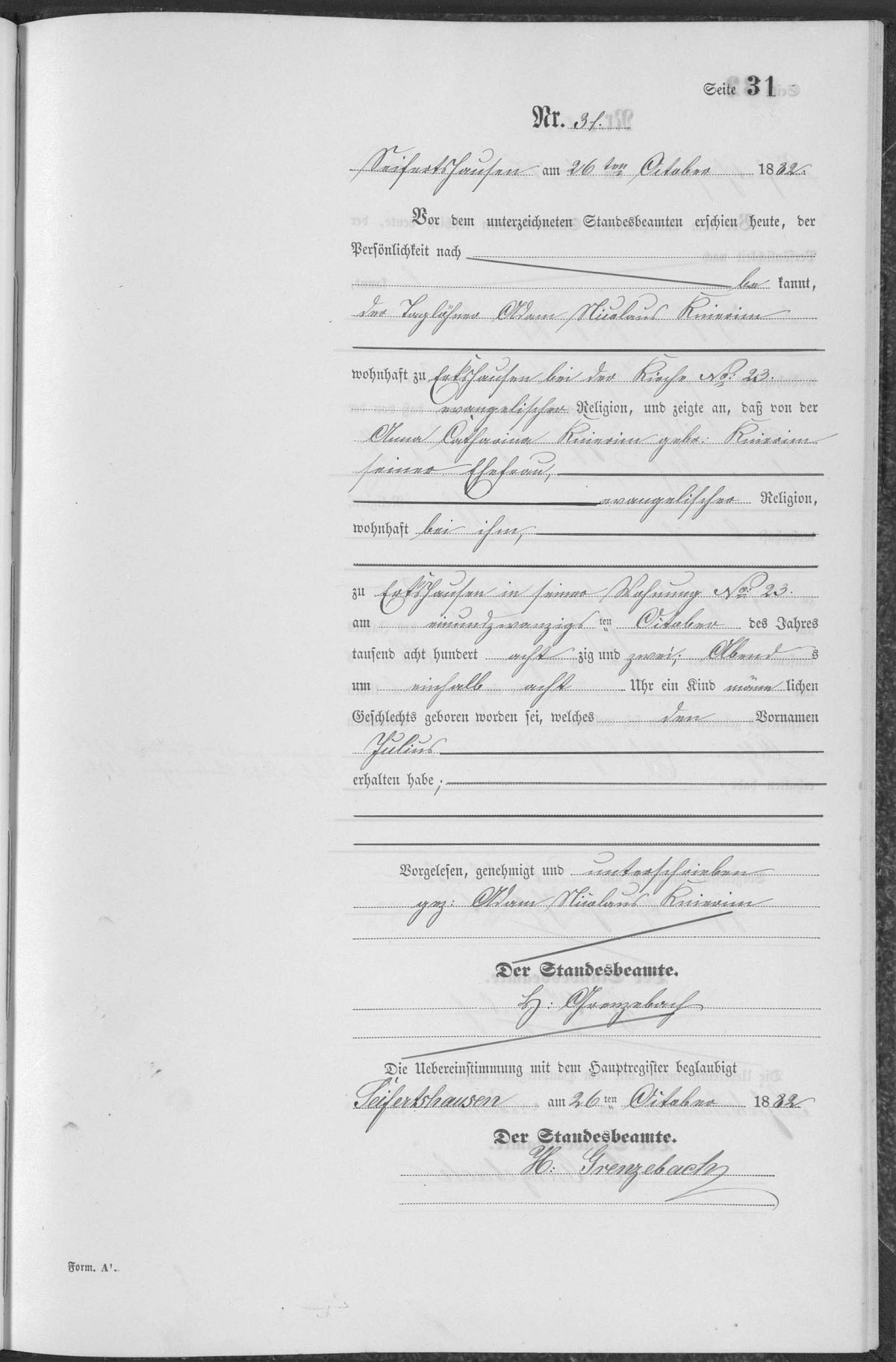 Quelle: Geburtsregister Standesamt Seifertshausen Nr. 31/1882