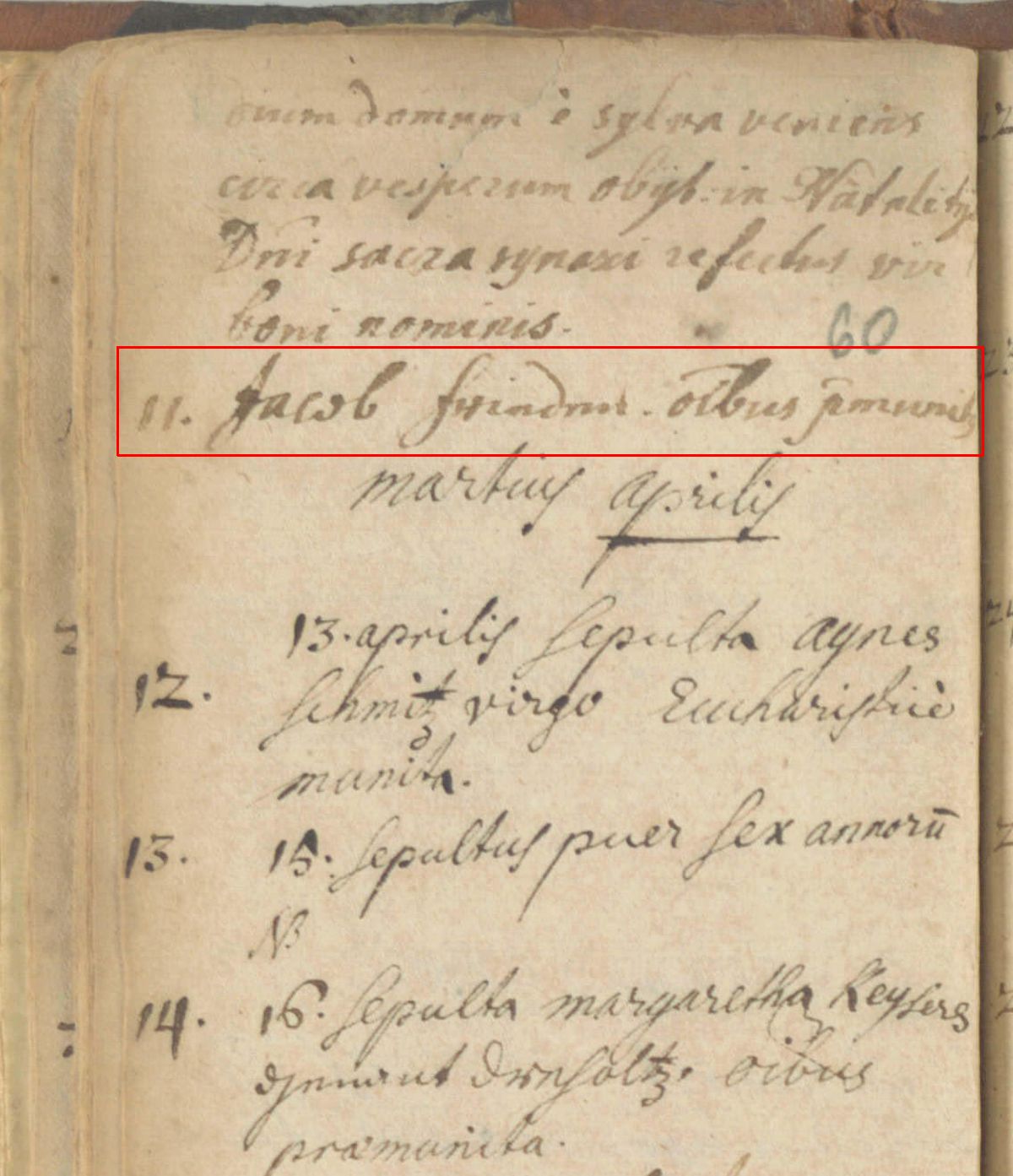 Quelle: Sterbeeintrag Kirchenbuch Seite 60 des Jahres 1649 der katholischen Kirche St. Johann Baptist zu Honnef