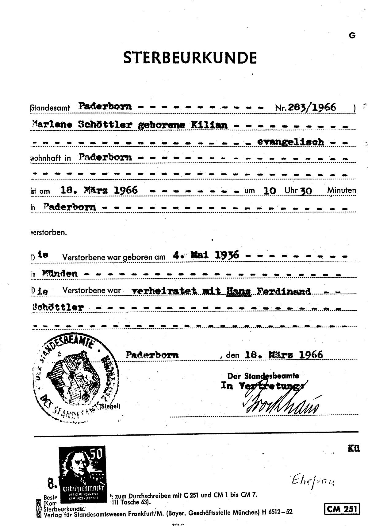 Sterberegister Standesamt Paderborn Nr. 283/1966.