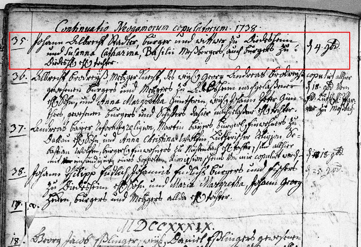 Quelle: Kirchbucheintrag Kichenbuch 1738 der ev. Kirchengemeinde Neckarelz