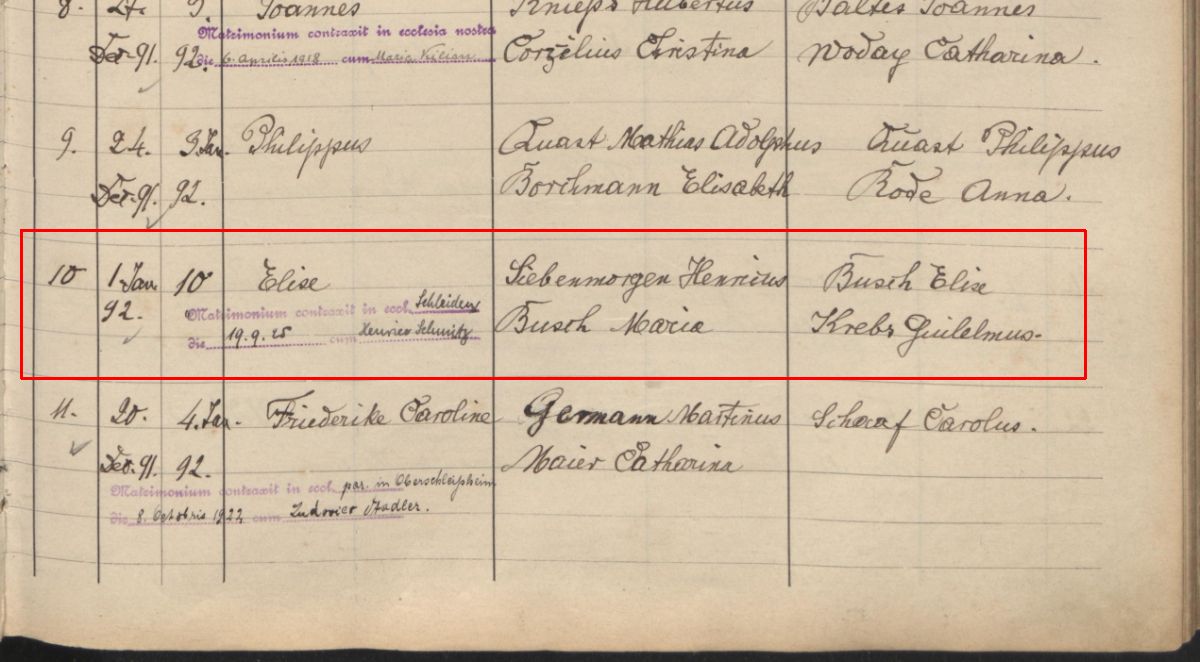 ~ 10.01.1892 Bonn, Stiftskirche, Taufpaten: Elise Busch und Wilhelmus Krebs