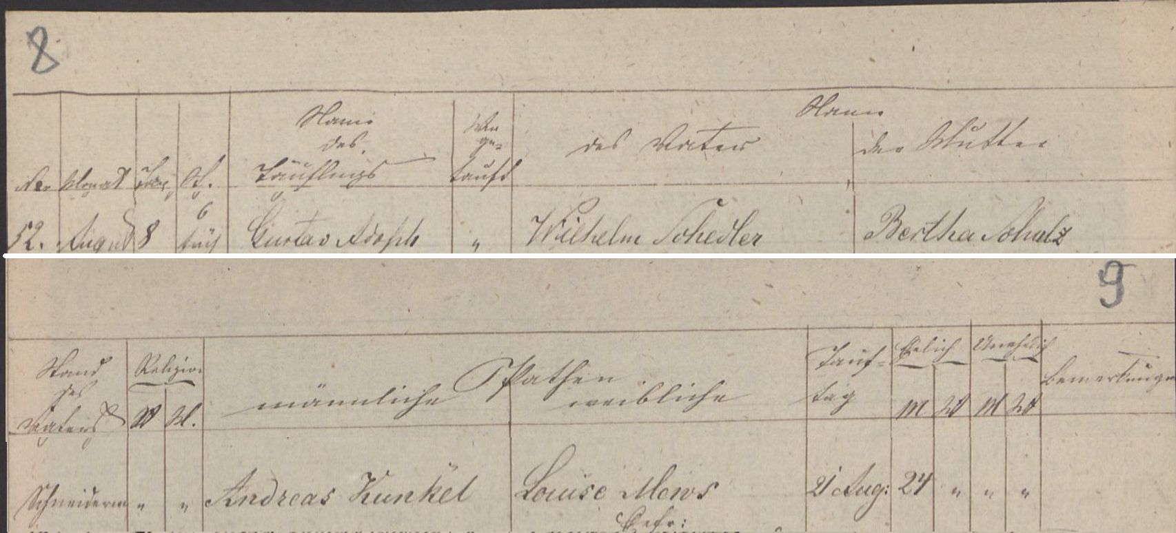 Quelle: Taufeintrag 1856 der evangelische Kirchengemeinde Schönlanke