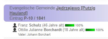 oo 19.09.1841 Putzig, Kr. Filehne (heute Jędrzejewo Landgemeinde Czarnków) Franz Schulz