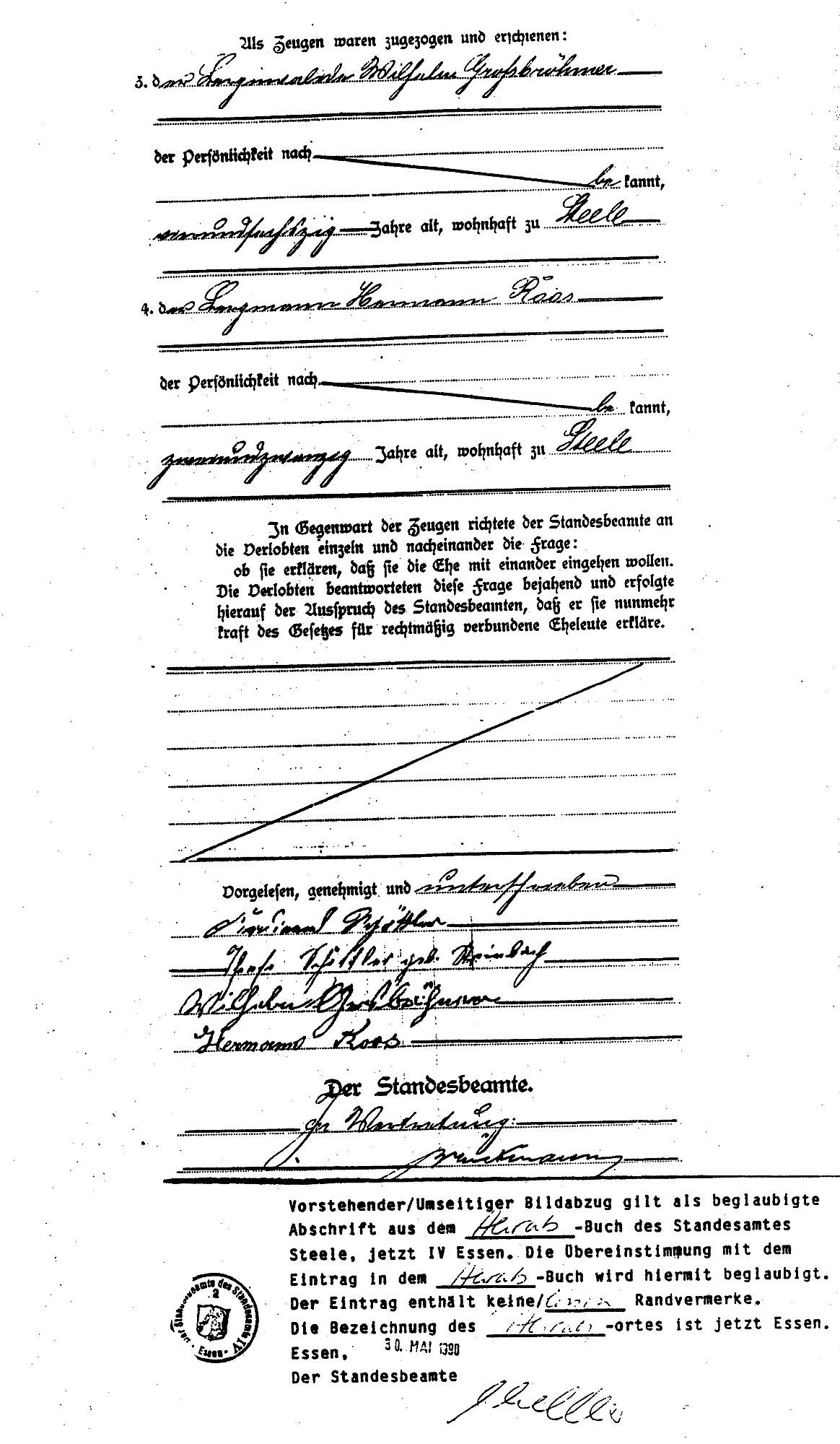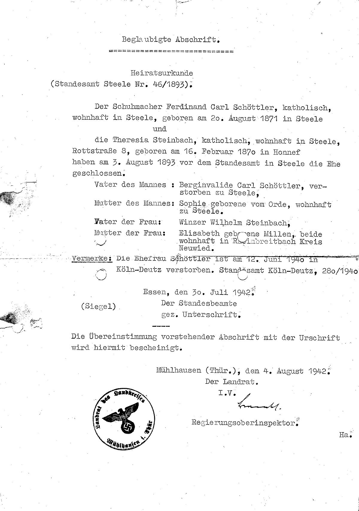oo 03.08.1893 Steele (heute Stadtteil von Essen) Theresia Schöttler geb. Steinbach