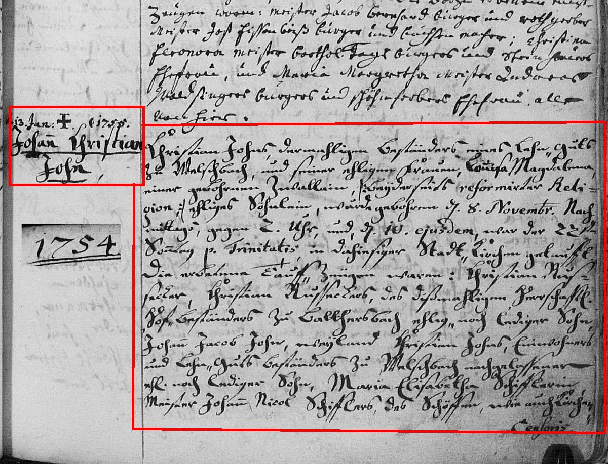 Quelle: Taufeintrag 1754 der Ev. Kirche zu Ottweiler