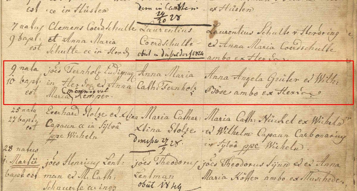 Vater: Joannes Fernholz Mutter: Anna Maria Elisabeth Fernholz geb. Mönnig Geschwister: Anna Maria Elisabeth Fernholz Johann Peter Fernholz Maria Ferdinandina Fernholz Maria Theresia Fernholz
