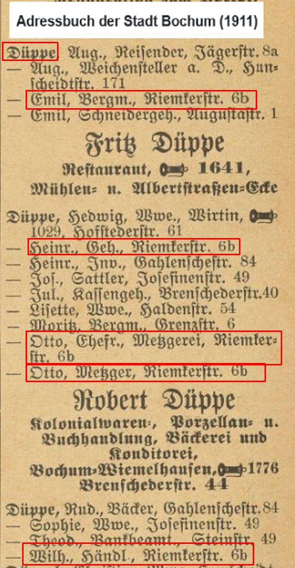 Vater: Heinrich Düppe Mutter: Bertha Düppe geb. Hilgenstock Geschwister: Friedrich Wilhelm Düppe Theodor Heinrich Düppe Heinrich Düppe Rudolf Düppe Emil Düppe Wilhelm Düppe