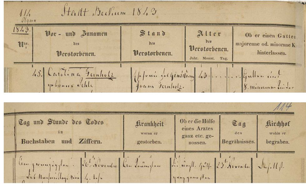 Sterberegister Sankt Stephanus in Beckum Kirchenbuch 17 Seite 114 Zeile 45. lt. Sterberegister 8 Kinder