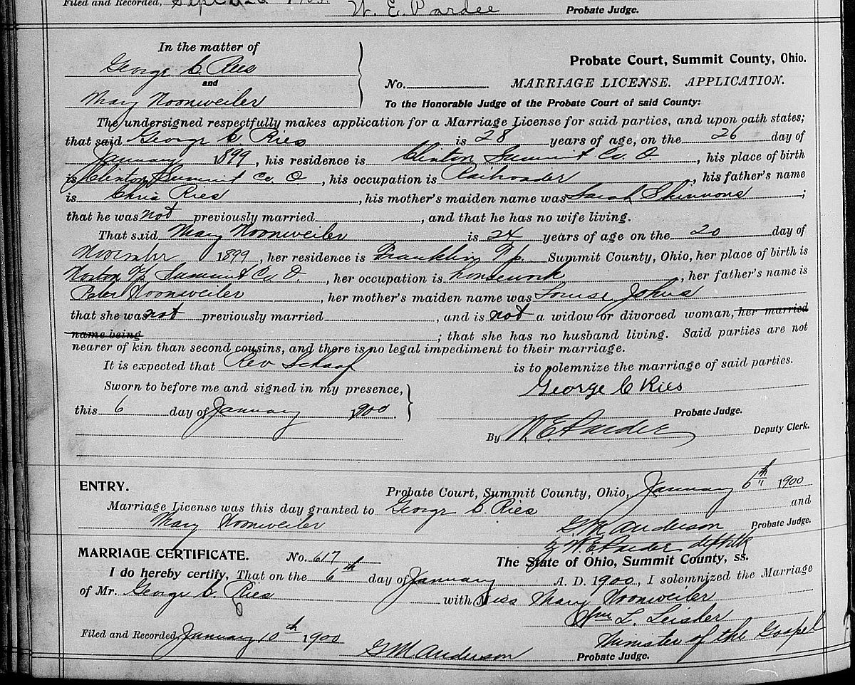 oo 06.01.1900 Summit County, Ohio, USA Mary Ries geb. Nonnweiler