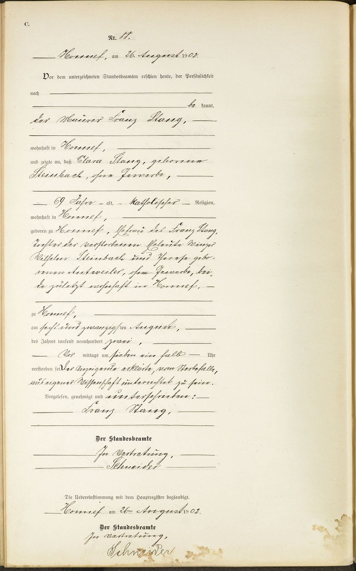 Sterberegister Standesamt Honnef Nr. 88/1902