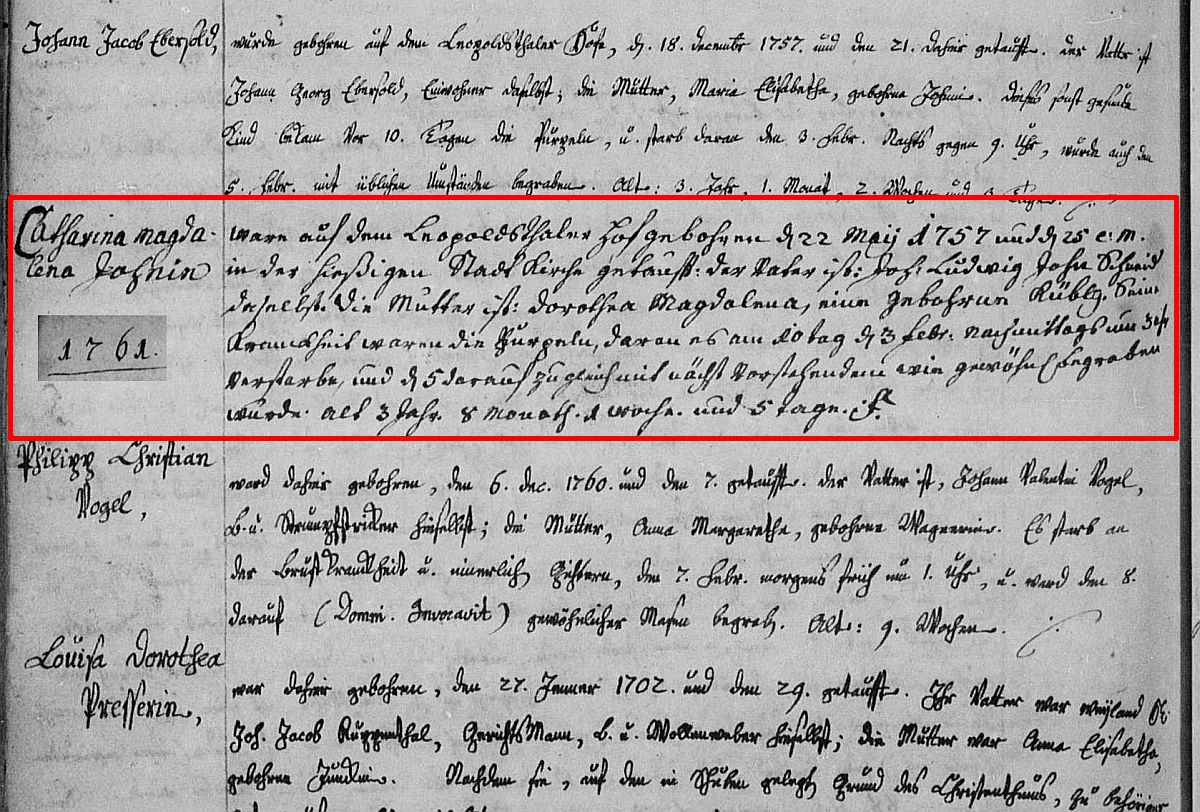 Quelle: Taufeintrag 1757 der Ev. Kirchengemeinde Ottweiler