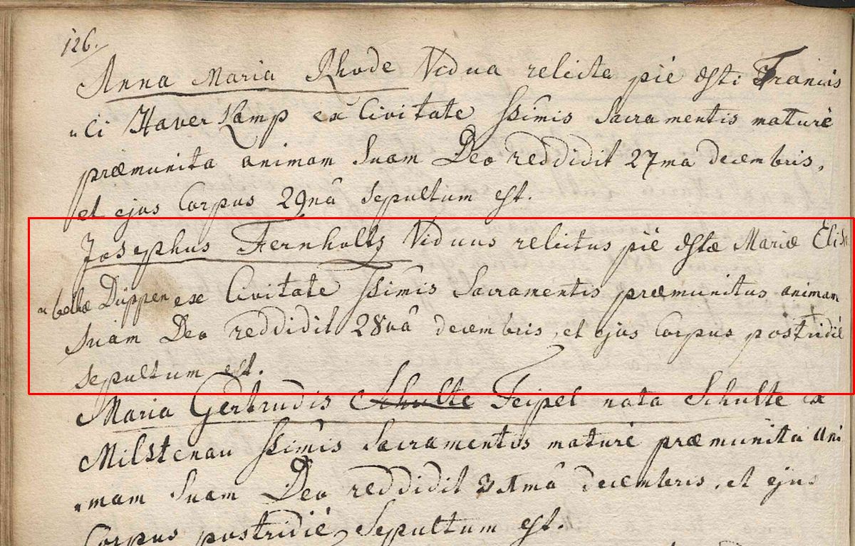 Kinder: Maria Elisabetha Fernholz Joseph Wilhelmus Fernholz Anna Gertrudis Fernholz Anna Elisabetha Fernholz Johann Henricus Fernholz Joannes Fernholz Anna Elisabeth Fernholz